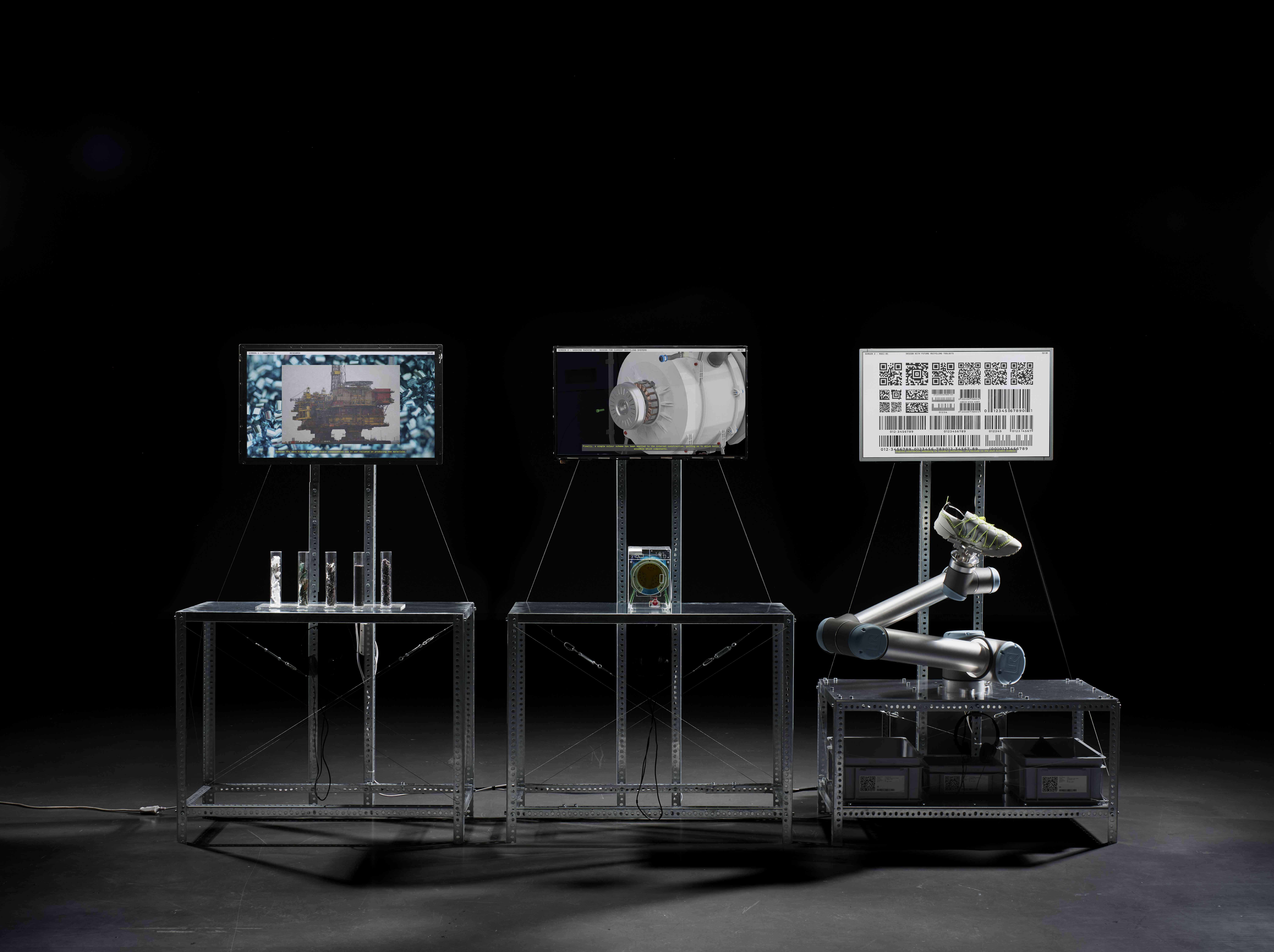 An exhibition setup presenting the overall project ‘FRACTIONS’ which encompasses RUEI-01 and Washing Machine 01.